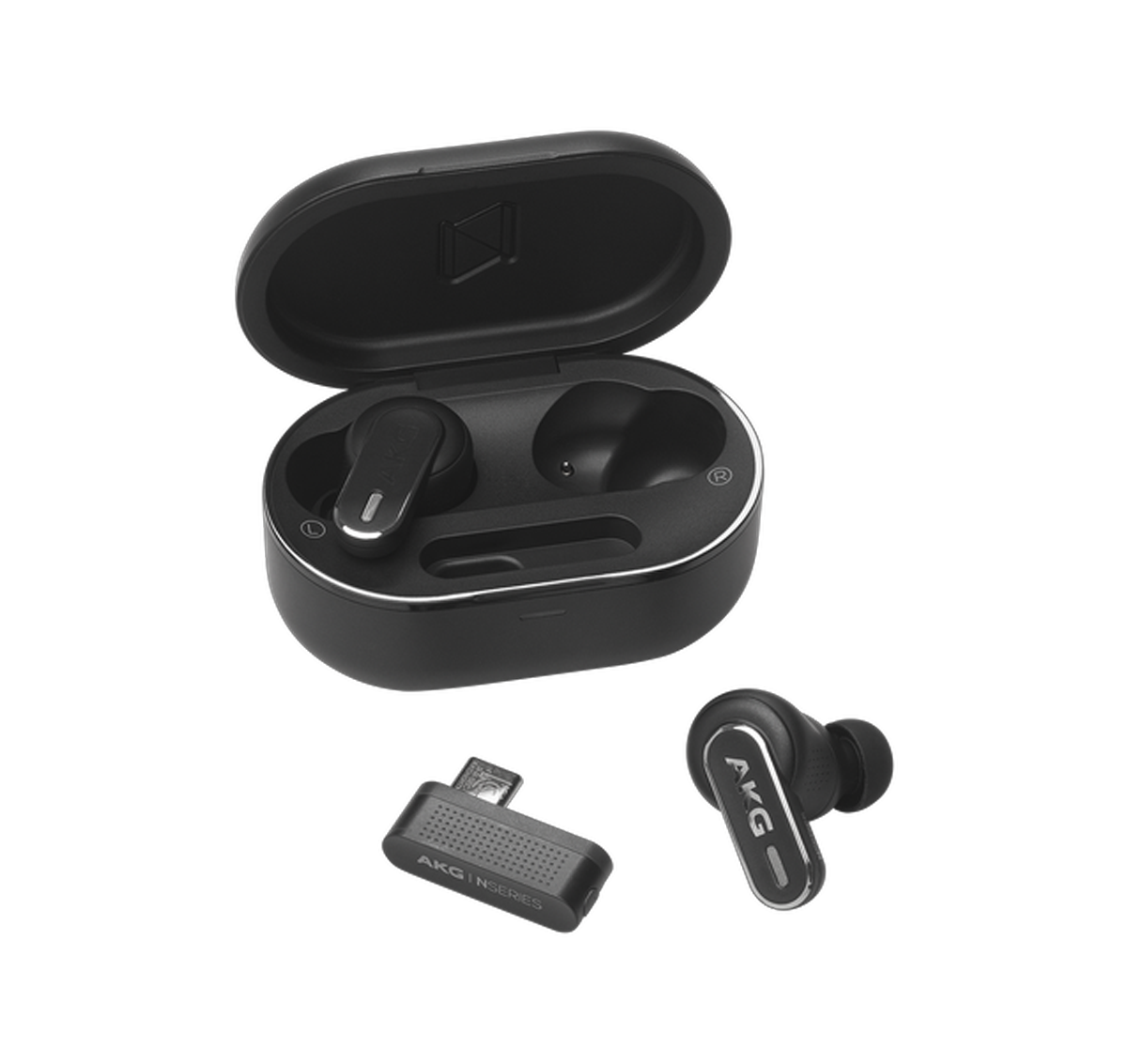 Conecta el dongle USB-C inteligente, que se guarda cómodamente en el estuche de carga (se incluye un conector USB-A), a cualquier dispositivo para disfrutar de una conexión instantánea y perfecta. La conexión multipunto te permite cambiar fácilmente entre una llamada en tu teléfono y una reunión de Zoom en tu computadora, mientras que Google Fast Pair y Microsoft Swift Pair te ofrecen una experiencia fluida al conectarte con varios dispositivos. Los audífonos AKG N5 Hybrid se conectan a través de Bluetooth® con cualquier dispositivo Apple, Android o Windows.